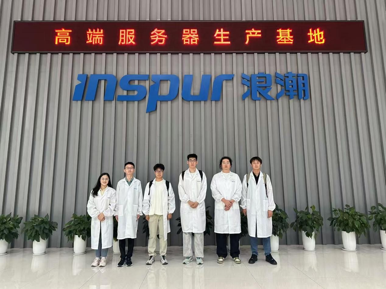 随后,实践队来到浪潮孙村产业园高端服务器生产基地,实地了解高端服务器的生产制造过程,并参观服务器组装和测试智能生产线,通过工厂中的智能化生产设备和精细化生产流程,同学们深刻感受到了浪潮集团自主创新的科技成果和精益求精的目标追求。